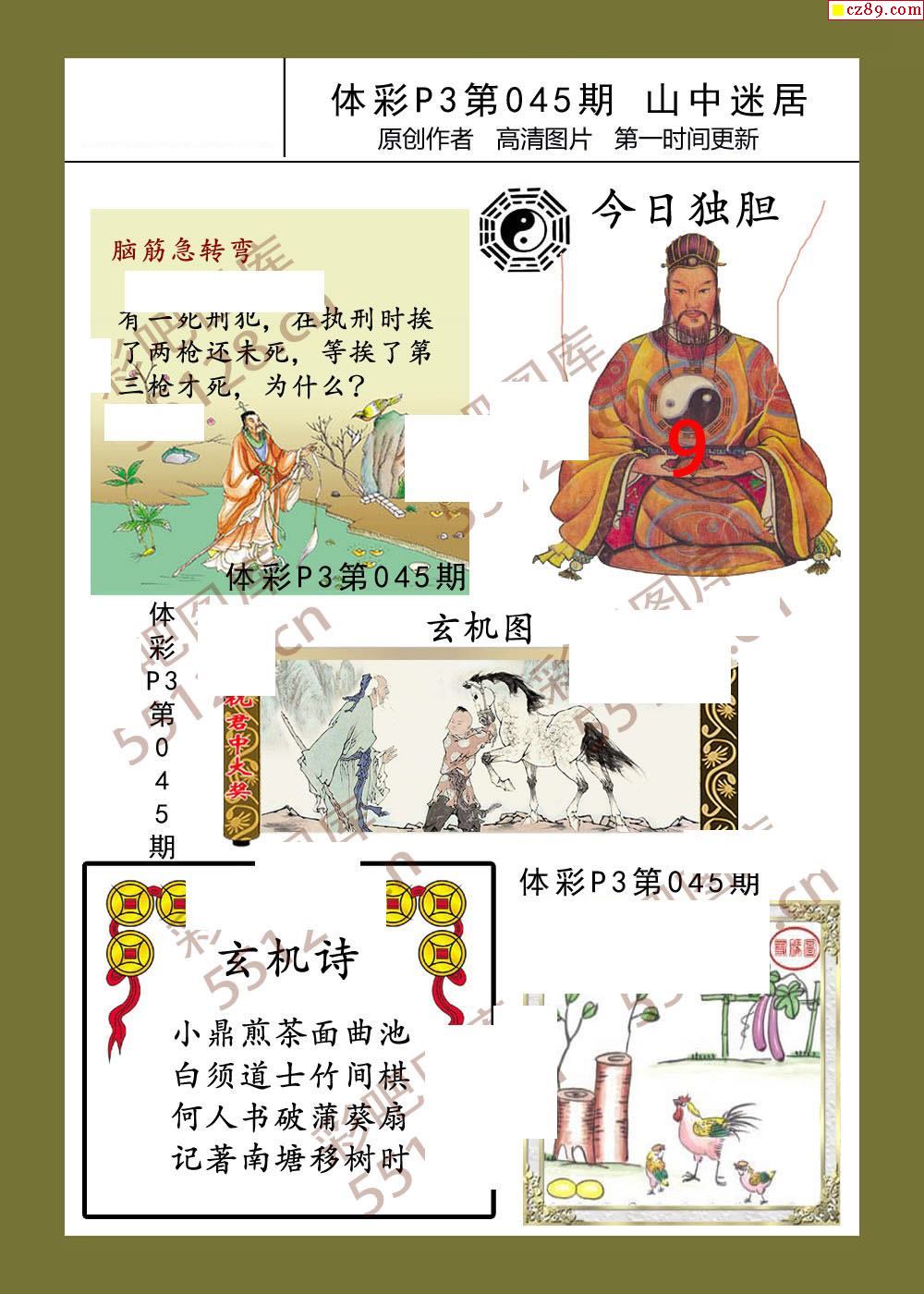 > 山中迷居045期体彩p3图谜