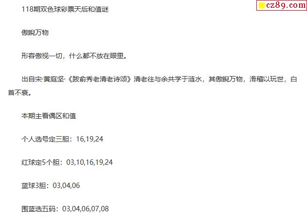 25年福彩双色球118期 彩票天后和值谜