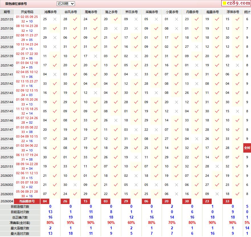004期彩票专家双色球杀红蓝推荐汇总